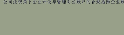 公司法视角下企业开设与管理对公账户的合规指南